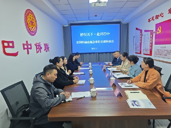 11月29日,韩国川渝总商会王艳会长率韩国川渝总商会副会长王莹、邱熙智、黄庆鑫,驻四川代表岳海磊等一行来巴与巴中市侨联开展座谈交流,共商合作事宜。
